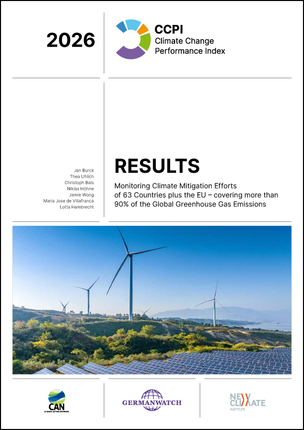 Der von Germanwatch und NewClimate Institute veröffentlichte Klimaschutz-Index (Climate Change Performance Index, CCPI) ist eine Rangliste von 63 Ländern plus EU gesamt, die zusammen für mehr als 90 Prozent der weltweiten Treibhausgasemissionen verantwortlich sind. Fortschritte im Klimaschutz sind zehn Jahre nach dem Pariser Klimaabkommen deutlich sichtbar, jedoch ist das Tempo zu langsam. Deutschland steht mit schwächster Platzierung seit sechs Jahren auf Rang 22 und Russland, die USA, Saudi-Arabien und Iran stehen ganz unten.