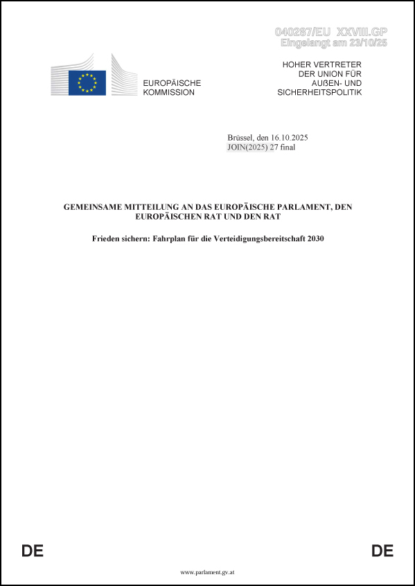 https://www.sinn-schaffen.de/hans-jochen-luhmann/verteidigungsplanung-der-eu-ein-formal-korrekter-und-transparenter-ansatz-nur-voellig-ueberzogen/Die EU hat am 16. Oktober 2025 einen „Fahrplan für die Verteidigungsbereitschaft 2030“ vorgelegt. Daran könnte Europa auch scheitern und in konkurrierende Nationalstaaten auseinanderbrechen. Das Programm der Unabhängigkeit von den US-Fähigkeiten ist strittig zwischen den EU-Staaten, entlang der Linie östliche Beitrittsländer versus westliche Altmitglieder. (November 2025)